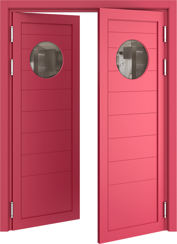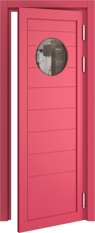 В зависимости от модели, в полотне межкомнатной двери может быть стеклянный иллюминатор. Он необходим в условиях, когда требуется обзор соседнего помещения. Например, наличие иллюминатора в двери между кухней и залом ресторана помогает узнать о готовности блюд, не входя в пищевой блок.